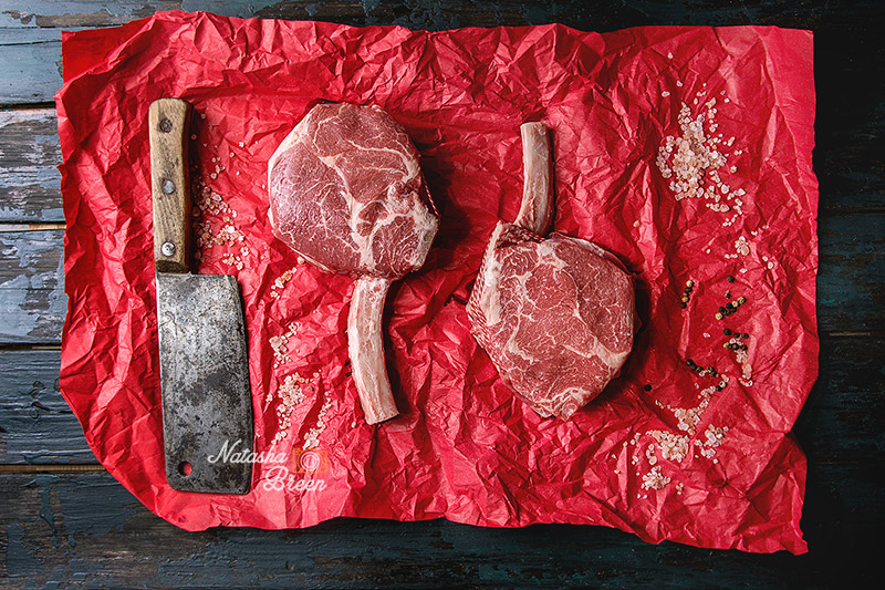 Raw tomahawk steak